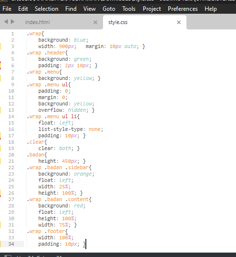 Pembuatan Layout HTML Sederhana (style.css)