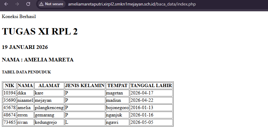 | 11 | 2 | Amelia Mareta | http://ameliamaretaputri.xirpl2.smkn1mejayan.sch.id/baca_data/index.php | ![]() |