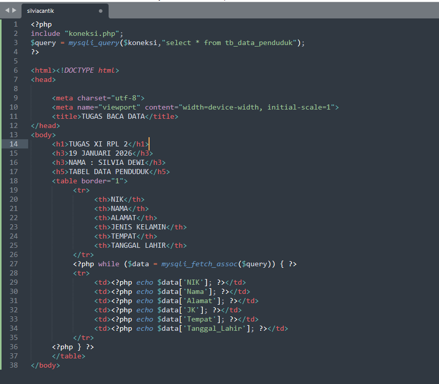 | 9 | 29 | Silvia Dewi | http://silviadewitriastuti.xirpl2.smkn1mejayan.sch.id/baca_data/index.php | ![]() |