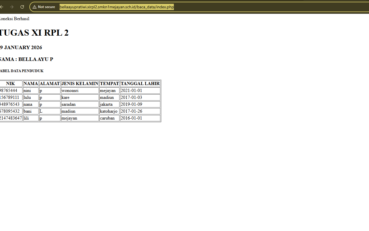 | 3 | 26 | prissa aulia w.p | http://prissaauliawigaputri.xirpl2.smkn1mejayan.sch.id/baca_data/index.php | ![]() |