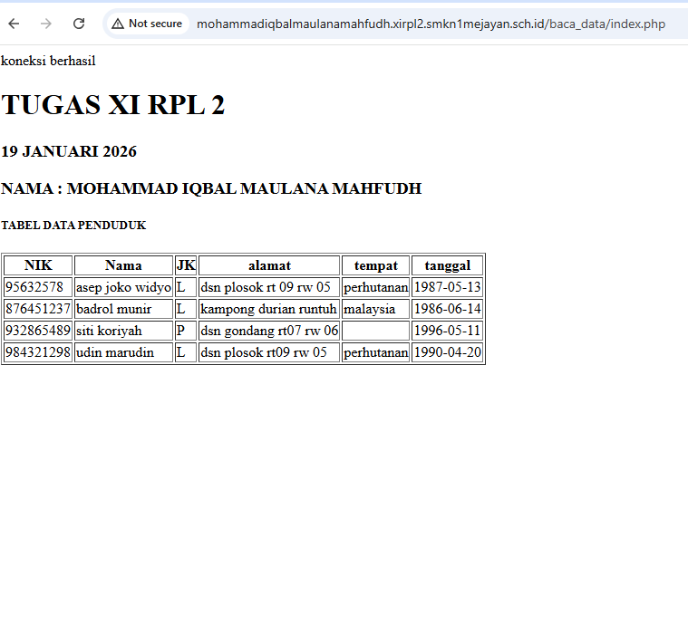 | 15 | 22 | MOHAMMAD IQBAL MAULANA MAHFUDH | http://mohammadiqbalmaulanamahfudh.xirpl2.smkn1mejayan.sch.id/baca_data/index.php | ![]() |