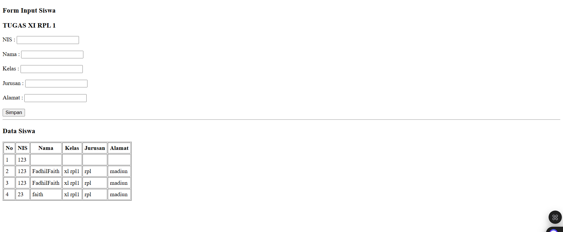 | 2 | 13 | FadhilFaith | fadhilfaithalabrisamdewanto.xirpl1.smkn1mejayan.sch.id/inputsiswa/index.php | ![]() |