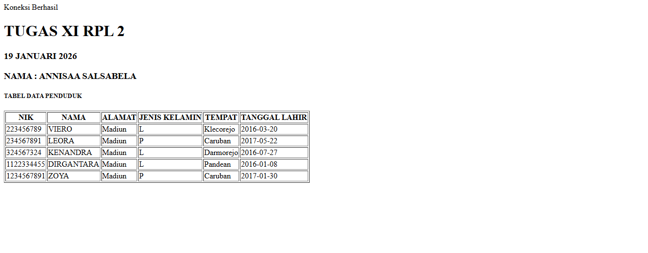| 19 | 5 | Annisaa Salsabela H. | http://annisaasalsabelahartono.xirpl2.smkn1mejayan.sch.id/baca_data/index.php | ![]() |