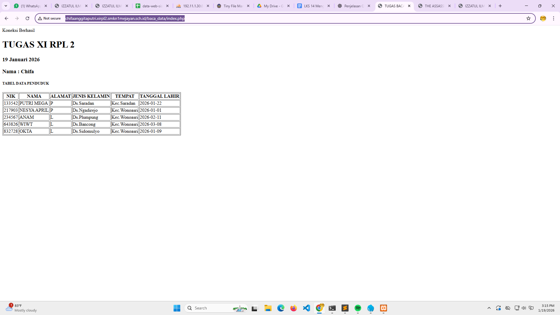 | 3 | 26 | prissa aulia w.p | http://prissaauliawigaputri.xirpl2.smkn1mejayan.sch.id/baca_data/index.php | ![]() |