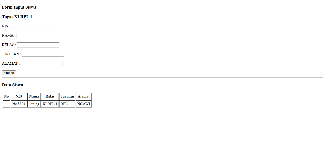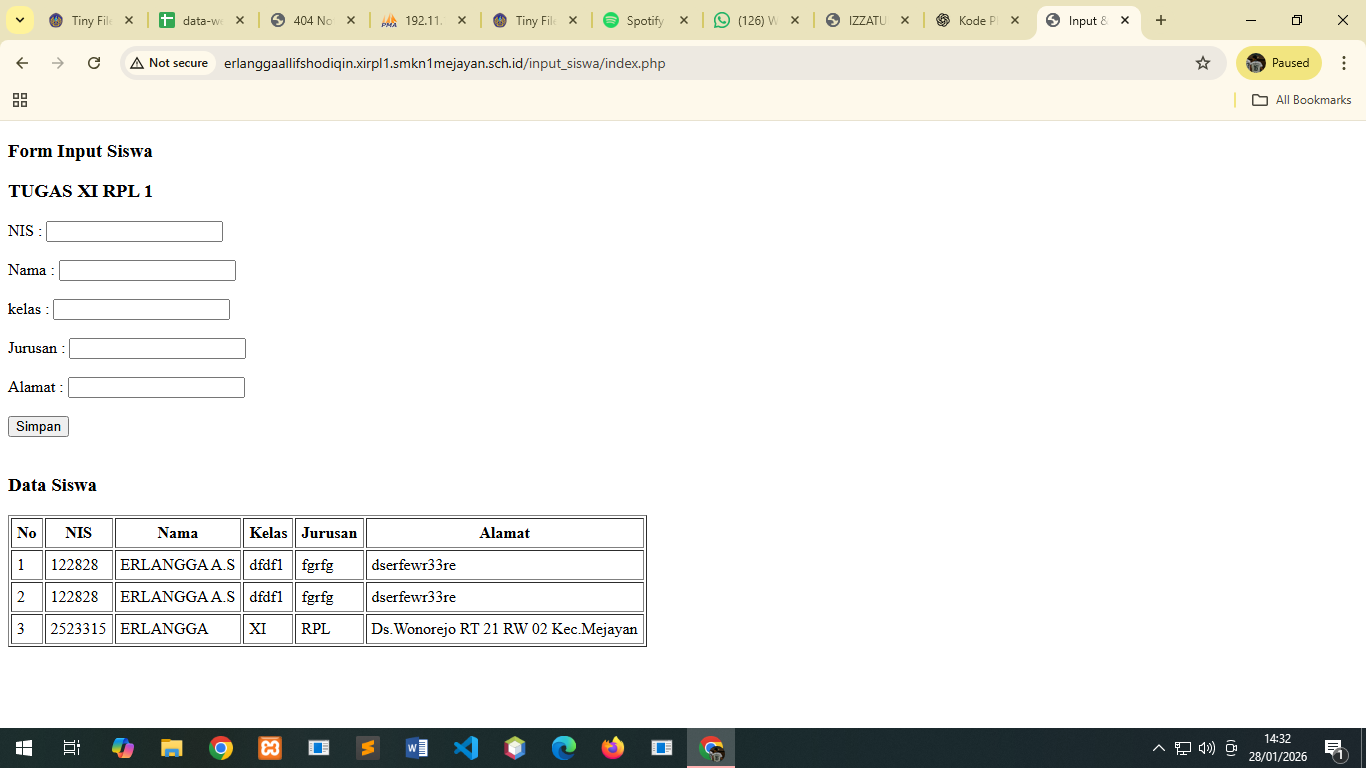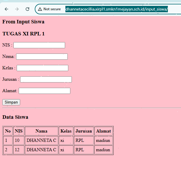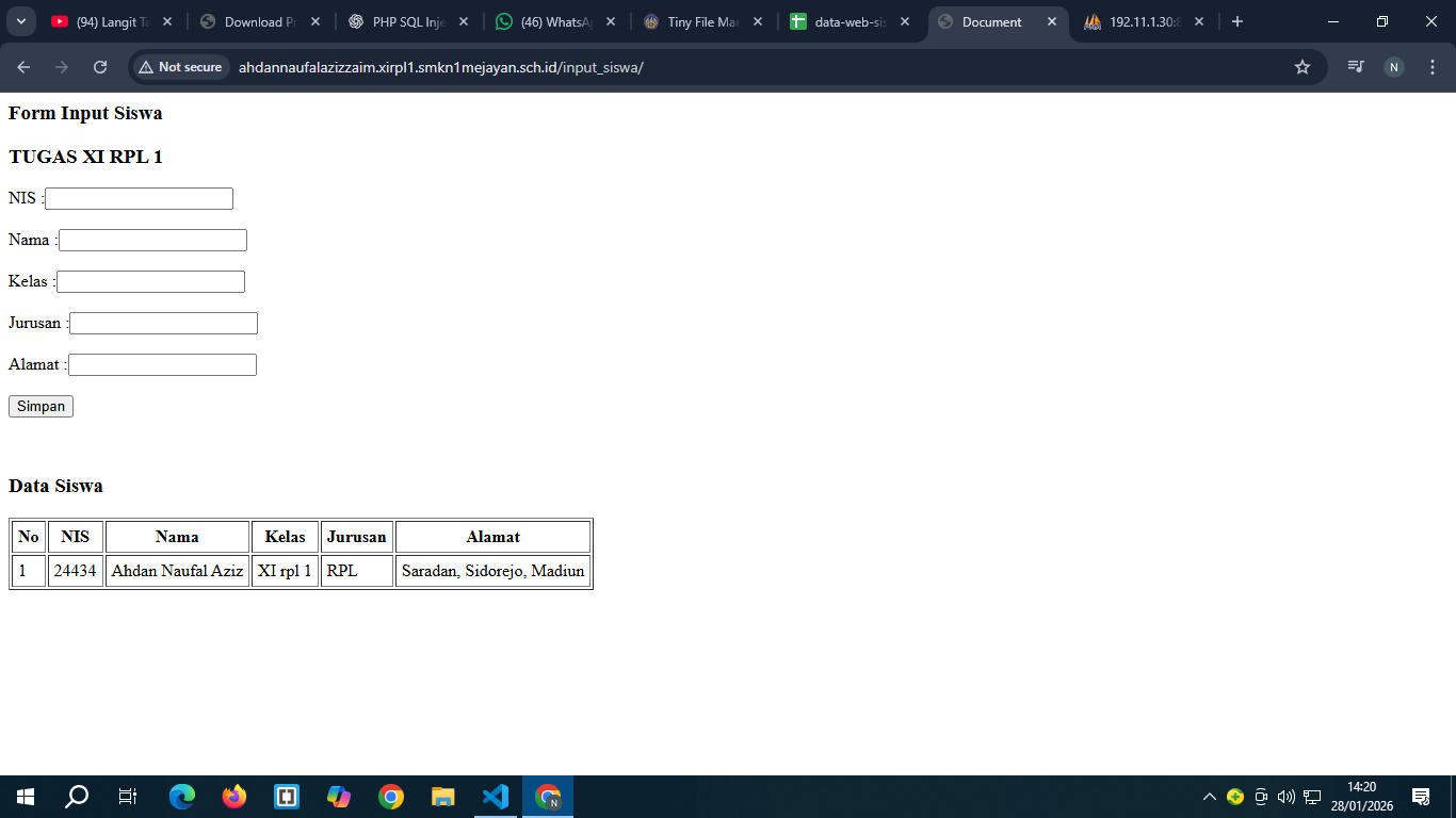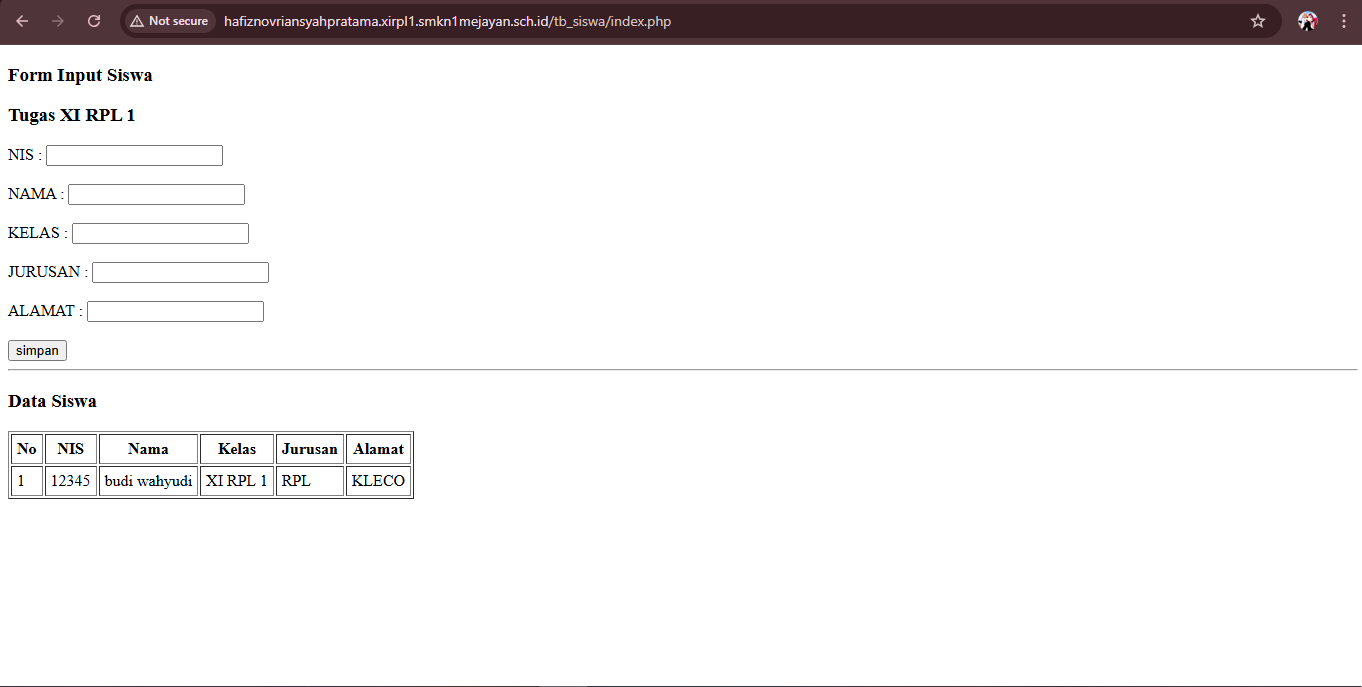 | 4 | 1 | Ahdan Naufal Aziz | http://ahdannaufalazizzaim.xirpl1.smkn1mejayan.sch.id/input_siswa/ | ![]() |